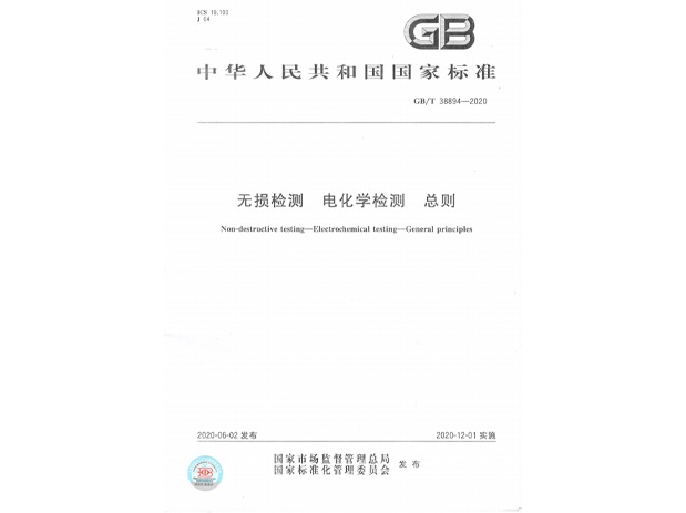 2020年6月2日,由國家市場監督管理總局,國家標準化管理委員會公布236 項推薦性國家標準中,由我公司作為主要起草單位的國家標準《無損檢測 電化學檢測 總則》也在列,將于2020年12月1日實施。該標準 由TC56(全國無損檢測標準化技術委員會)歸口上報及執行 ,主管部門為國家標準化管理委員會。